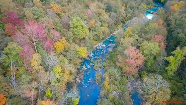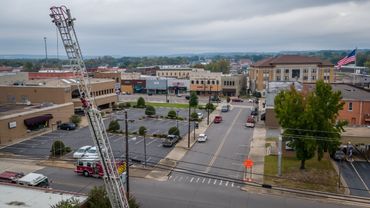 A little farther north, hanging baskets of flowers and awnings accentuate old brick storefronts that line the Harrison square, which with a few adjacent buildings, make up its national historic district. The flavor of the city is reflected in the Main Street Harrison Historic Walking Tour, which includes downtown parks, the historic Lyric Theater, the 1909 Boone County courthouse, the 1914 Boone County Jail, and the completely restored 1929 Hotel Seville. Downtown Harrison also embraces restaurants, an art gallery, antique stores, and other retail shops. In addition, the town has the Boone County Heritage Museum and Mystic Caverns. uas image drone photography